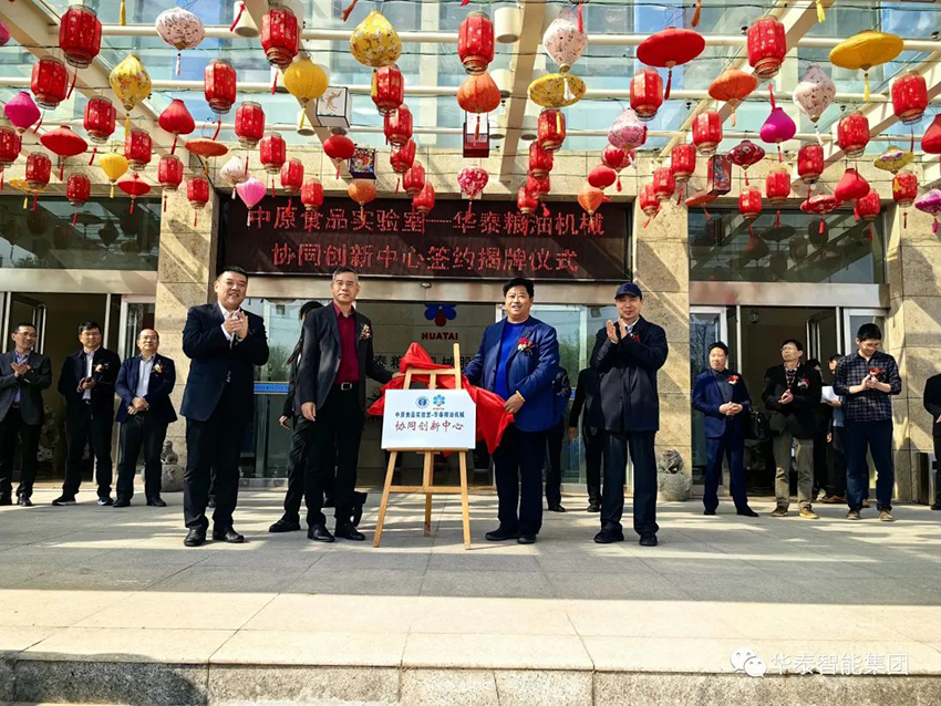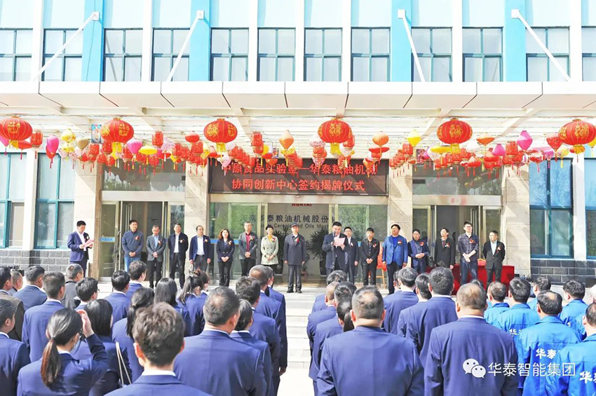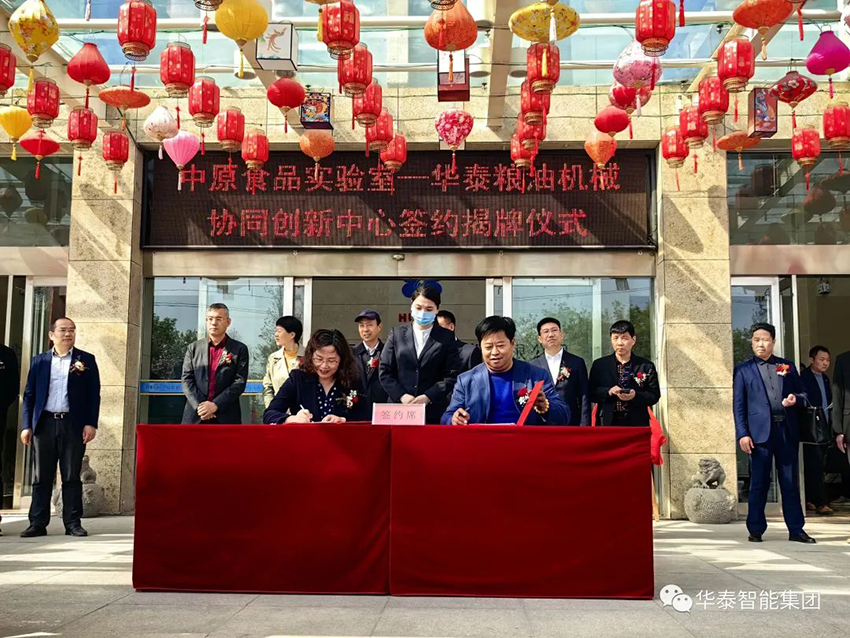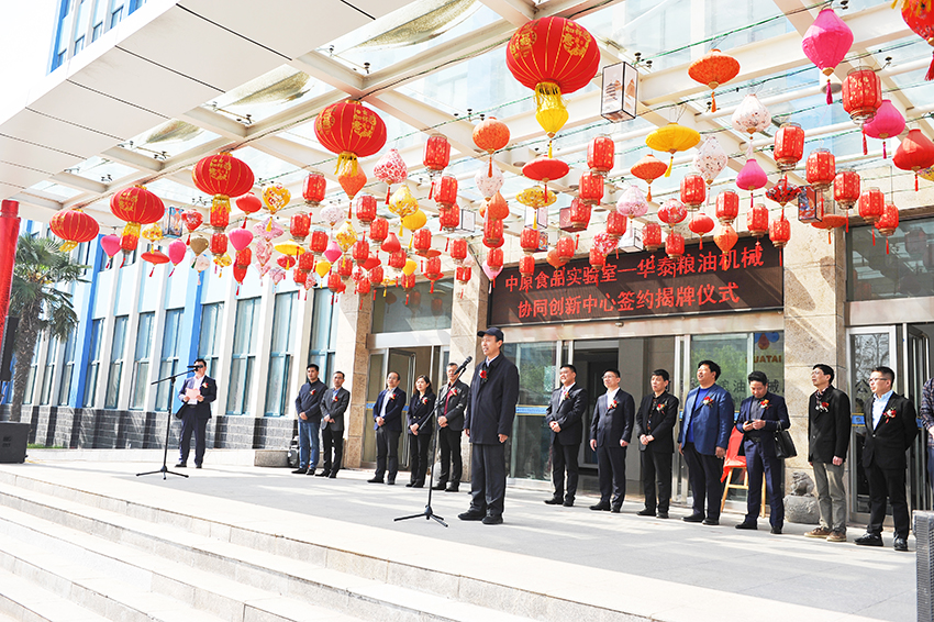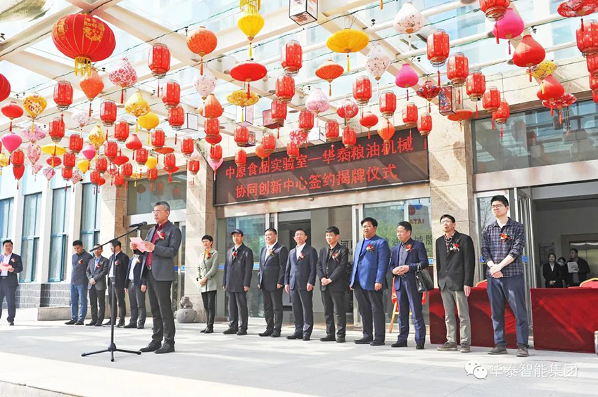 仪式上,毕艳兰代表中原食品实验室与河南华泰粮油机械股份有限公司董事长闫子鹏签订中原食品实验室共建协议;陆志杰、任发政为华泰粮油机械授牌。这标志着中原食品实验室华泰粮油机械协同创新中心正式启动运行。