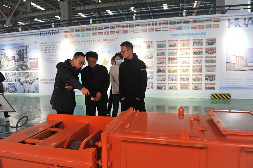 魏立新一行参观了华泰智能装备集团产品展示车间。闫博向调研组领导就集团的研发生产、市场运营、产品优势等情况做了详细介绍。目前,华泰在油脂机械、环保机械、医疗器械制造等方面取得了多项科学技术成果和专利技术产品,其产品畅销60多个地区。魏立新对华泰集团近年来的发展给予了充分的肯定,对华泰集团专利产品葵花籽剥壳机和棕榈果榨油机给予高度评价,魏立新表示:滑县是块福地,在此可以大有作为。未来在更深层次、更广领域、更大范围开展务实合作,为产业转型升级提供强大科技支撑。