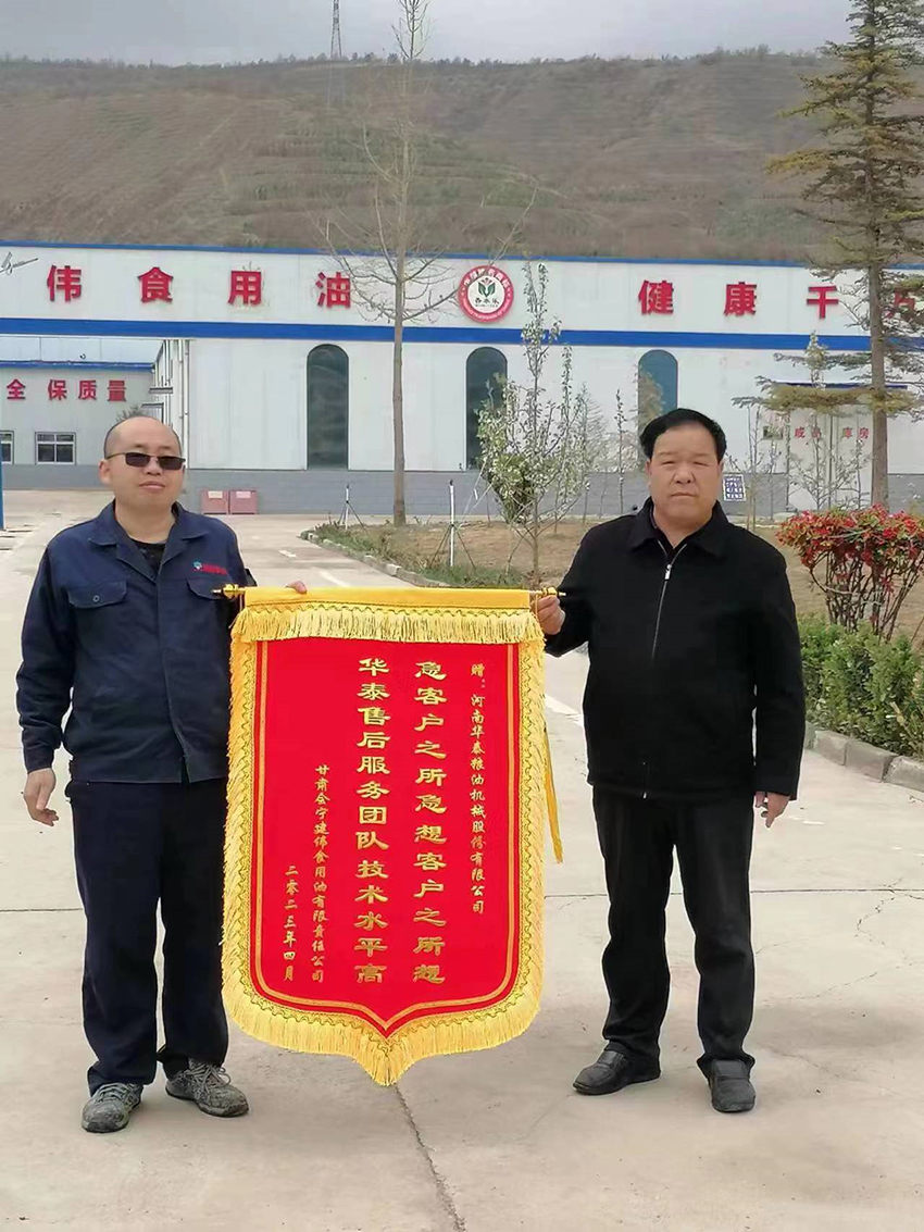 今年,甘肃会宁建伟食用油有限责任公司因扩大规模生产,生产线上工作人员更新,上了许多年轻的新人,他们对生产设备不熟悉,导致设备无法正常运转,且面临着大订单等着交单,让贾总作了难,紧急情况之下尝试着联系了设备的生产商华泰集团,华泰集团闻讯立即派出售后团队去实地开展人员开机、二次调试、培训等工作,为客户解决了生产上的困难。