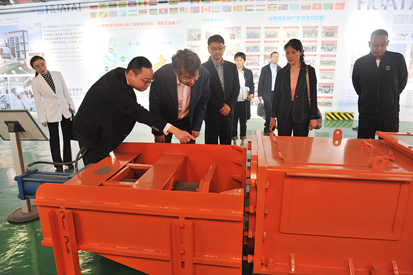 纪多辙一行通过实地参观考察,并深入了解了华泰智能装备集团产业规模、核心产品、技术和人才培养模式,对集团在油脂行业的行业作用和科研创新实力给予高度认可,并对华泰智能装备集团专利产品葵花籽剥壳机和棕榈果榨油机给予高度评价。纪多辙表示华泰智能装备集团是一家具有国际影响力的企业,希望双方能够进一步加强合作,共同推进人才培养和技术创新,为推动地方经济发展做出更大的贡献。