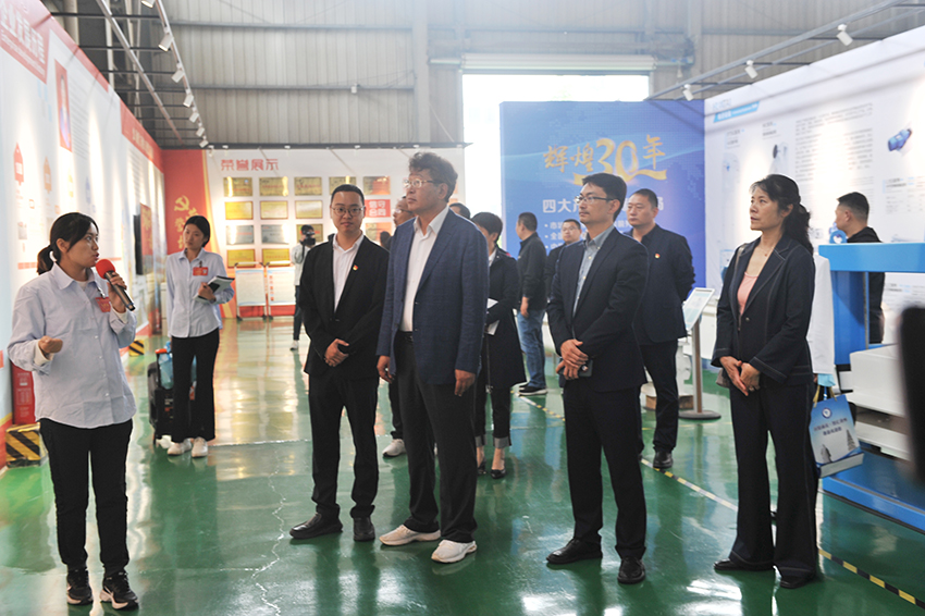 纪多辙一行参观了华泰智能装备集团产品展示车间。华泰智能装备集团党委书记、总经理闫博向调研组领导就华泰智能装备集团发展概况、科技创新、人才需求、工资待遇、人文关怀以及生产、销售情况、未来企业战略性目标发展做了介绍。