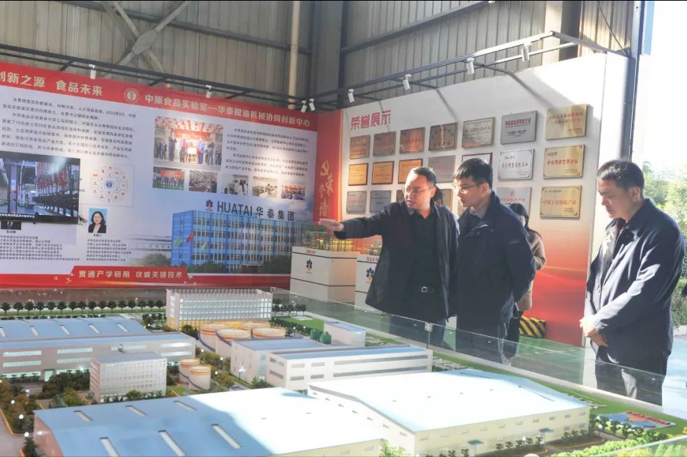 姬晓雷一行参观了华泰智能装备集团的产品展示车间,并在华泰会议室召开座谈会。闫博就生产运营、市场应用、产品优势、行业地位、发展规划及上市进程等情况等进行了详细介绍。作为专精特新“小巨人”企业,华泰已发展成为粮油机械、环保机械产业齐头并进的集团企业。姬晓雷认真听取了企业生产经营情况、股权融资情况、存在的困难问题及下一步资本运作计划等,并就当前资本市场资讯、我市资本市场扶持政策等与企业进行了宣讲交流,提出了推进企业上市相关工作建议,进一步增强企业上市的信心。