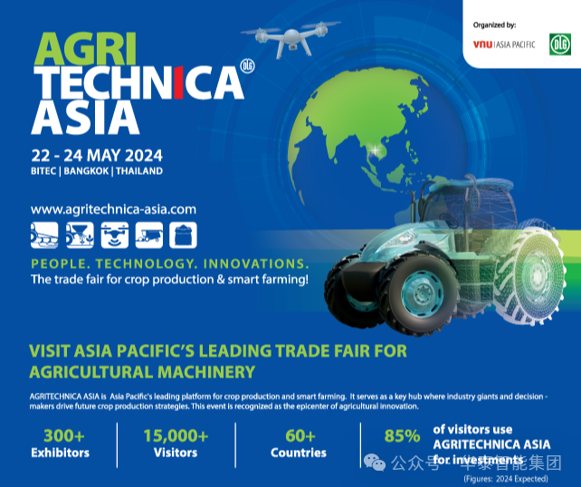 第五届亚洲泰国农业技术展览会AGRITECHNICA ASIA 将于2024年5月22日至24日在泰国曼谷的ITEC再次举行,届时将会成为覆盖整个亚洲的农业展览会,由德国汉诺威农业技术协会DLG与曼谷VIV Asia的荷兰-泰国展览主办机构VNU展览亚太区(vnu Exhibitions Asia Pacific)合作承办。重点介绍亚洲最大的农业买家。AGRITECHNICA ASIA强调农业工程解决方案,对亚洲市场的农业发展具有重要意义。届时将与第八届亚洲泰国国际园艺展览会Horti Asia同期举办。