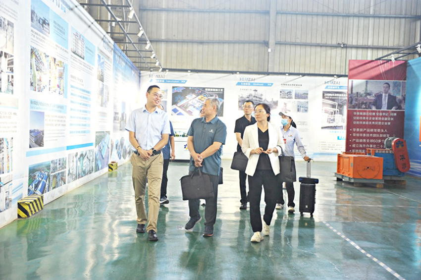 6月19日下午,安阳市工商联党组成员、副主席李艳芳,市委党校原副校(院)长赵锡信,市工商联秘书长何建丽,市工商联办公室主任林剑锋等一行莅临河南华泰智能装备集团考察指导工作,滑县县委统战部副部长、县工商联党组书记李朝勋及华泰智能装备集团党委书记、总经理闫博陪同调研。