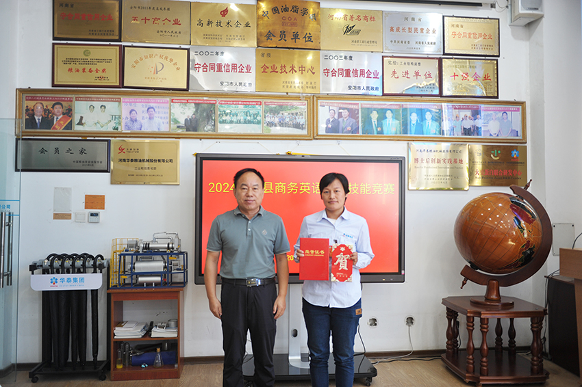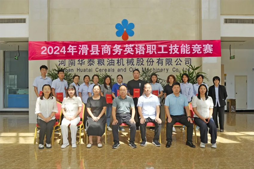 金秋送爽,硕果盈枝,9月6日上午,一场汇聚智慧与激情的商务英语盛宴——2024年滑县商务英语职工技能竞赛,在华泰智能装备集团会议室内圆满举办。本次活动由滑县总工会主办,滑县先进制造业开发区工会承办,河南华泰粮油机械股份有限公司协办,旨在深度挖掘并提升全县外贸战线职工的商务英语实战技能,进一步推动县域经济国际化进程。