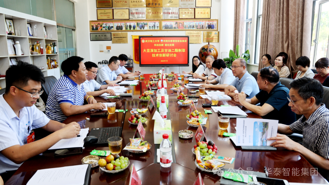 7月5日,以“科技创新,驱动发展”为主题的校企深度融合 智创粮油未来——武汉轻工大学与华泰智能装备集团联合召开的大豆深加工及甘油二酯食用油制取技术科技创新研讨会在河南华泰智能装备集团总部召开。会议由中国粮油学会油脂分会指导,汇聚了武汉轻工大学、中国粮油学会油脂分会及河南华泰智能装备集团的多领域专家。此次会议聚焦大豆深加工及甘油二酯食用油制取技术的前沿突破,通过校企产学研深度融合,共同探索粮油产业智能化、绿色化转型路径,为行业高质量发展注入创新动能。
