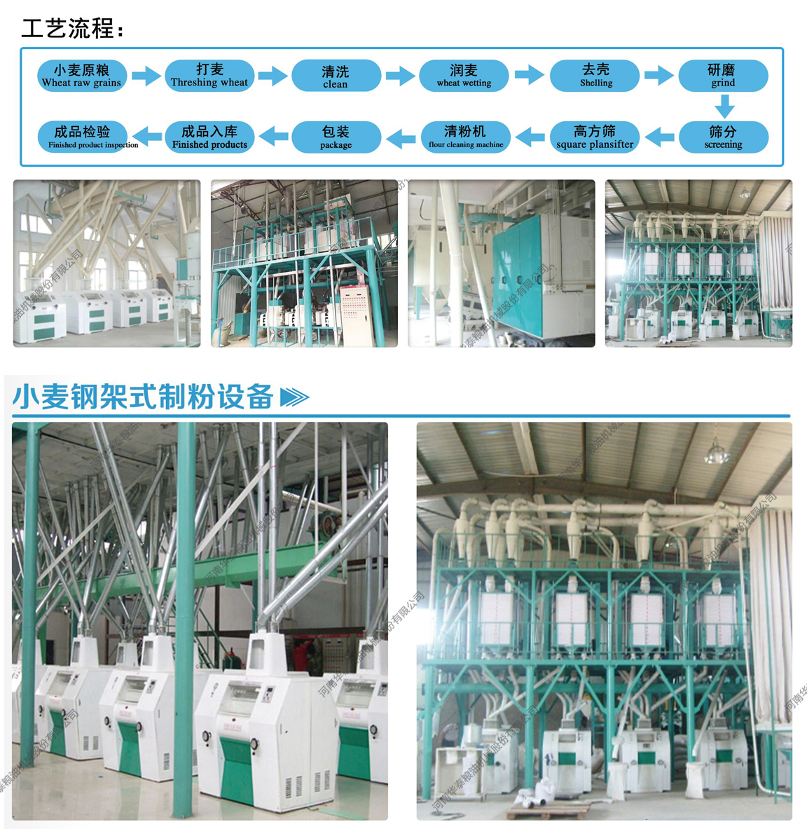 华泰生产的小麦制粉成套设备学习了国内外的技术参数,钢架楼房结构均可,占用空间小,产量大、质量好,出粉 率高,灰分低,消耗少。麦间采用三筛二打二去石一洗麦的清理工艺,粉间采用皮渣心并重,皮磨筛外分级,心磨撞击辅助出粉的工艺,电耗低,结构合理。