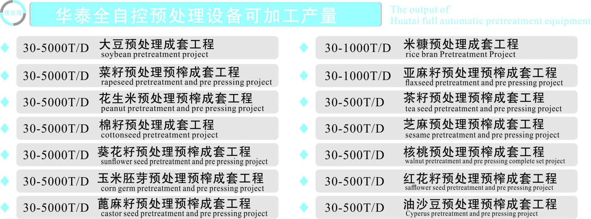 河南华泰专注于追求严谨工艺和对客户承诺的交付,我们拥有加工装备,为客户提供良好的售后服务。华泰可为您提供全套油质预处理工程解决方案,适用于大豆、花生米、棉籽、菜籽、蓖麻籽、葵花籽、亚麻籽、茶籽、红花籽、芝麻、核桃、玉米胚芽等多种油原料的预处理工程。